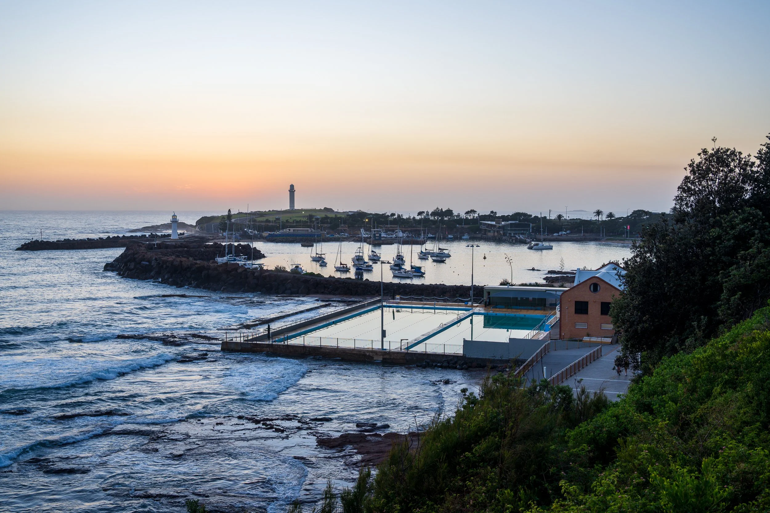 As I walked from the top of Cliff Road I took a couple of images across the Continental Pool and Wollongong Harbour. As I walked past a bunch of trees and bushes I spotted this gap that framed one of the handrails in between the two pools perfectly, I took a couple of images and watched as a bird flew into the frame. I captured it as it passed just above the handrail adding that little bit of something I felt was missing from my original attempts.